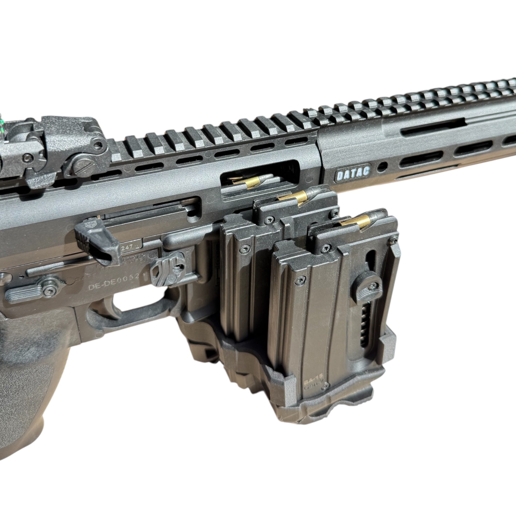 Le tripleur de chargeur DATAC®Pro Gen2 est un accessoire destiné aux chargeurs de BA-15 Cal.22. Il permet aux tireurs de fixer 3 chargeurs ensemble pour des rechargements plus rapides et avoir facilement accès à des munitions supplémentaires.